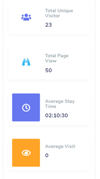 Unique Visitor,Page View,Bounce Rate,Average Stay Time,Average Visit,Traffic Analysis,Top Refferer,New & Returning Visitor,Content Overview,Country & Browser Report,OS & Device Report
